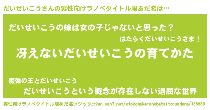 | 意味不明あだ名 | 『とにかく怪しいだいせいこう』 |