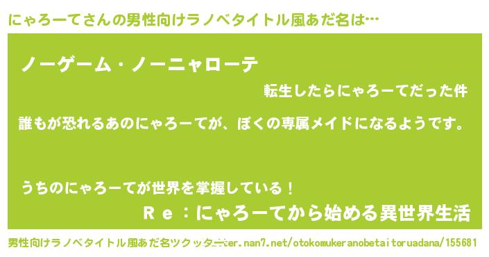 | 女子向けラノベタイトル風あだ名 | 『異世界でカフェにゃろーてを開店しました。』 |