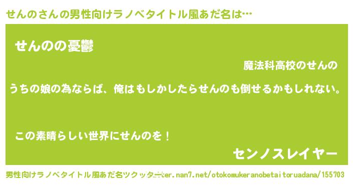 | ファンタジー風あだ名 | 『エターナルセンノー』『センフェル』 |