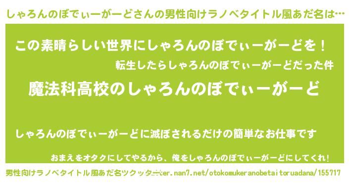 | 女子向けラノベタイトル風あだ名 | 『しゃろんのぼでぃーがーどアンティーク』 |