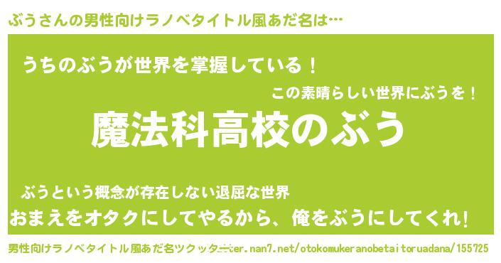 | ヘコむあだ名 | 『ぶう(笑)』『ぶうお』『ぶうにー』 |