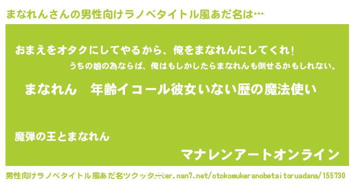 まなれんさんの男性向けラノベタイトル風あだ名をツクッター!