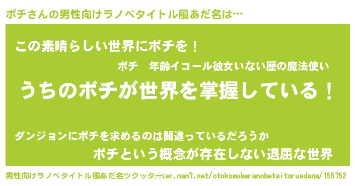 | ヘコむあだ名 | 『ボチ(笑)』『ボチ太郎』『ボチにー』 |