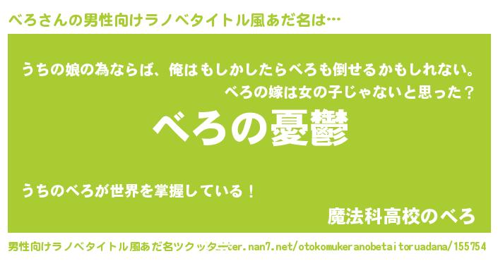 | ファンタジー風あだ名 | 『ベロフェル』『エターナルベロー』 |