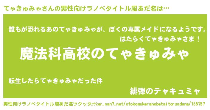 | 女子向けラノベタイトル風あだ名 | 『てゃきゅみゃなんてお断りですっ。』 |
