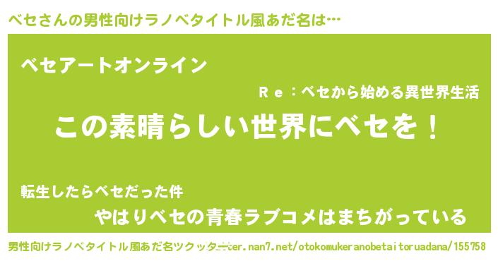 | 胡散臭い通販商品みたいなあだ名 | 『あなたにだけ特別に提供する100年もののヴィンテージワイン…その名も「ベセ」』 |