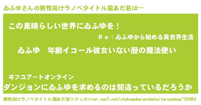 | 女子向けラノベタイトル風あだ名 | 『ゐふゆの玉の輿計画!』 |
