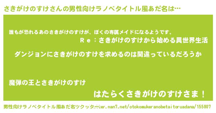 | 女子向けラノベタイトル風あだ名 | 『さきがけのすけは平凡を望む』 |