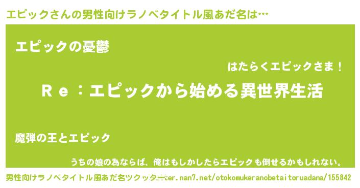 | 女子向けラノベタイトル風あだ名 | 『闇のエピック』『エピックの婚約者』 |