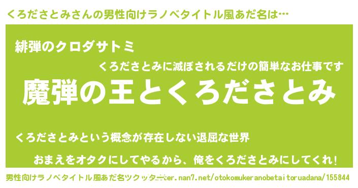 | 意味不明あだ名 | 『住所不定無職くろださとみ(14歳)』 |