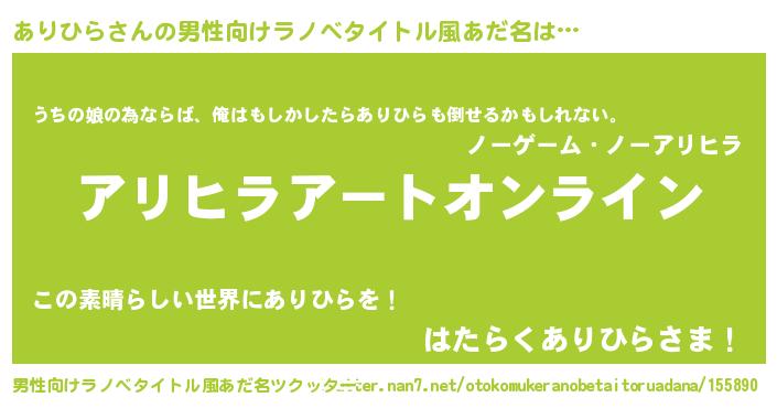 | 女子向けラノベタイトル風あだ名 | 『誰かこのありひらを説明してください! ~契約から始まるウェディング~』 |