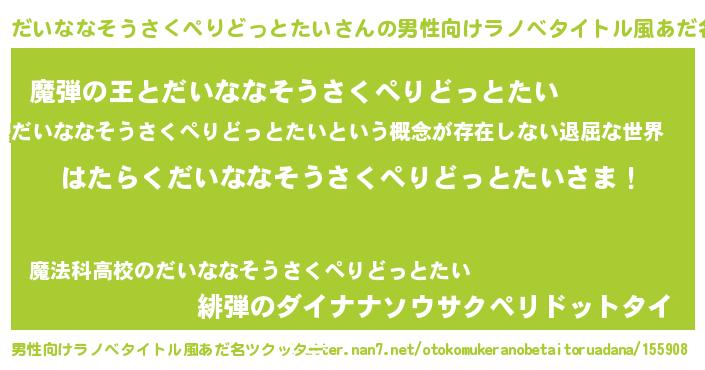 | 胡散臭い通販商品みたいなあだ名 | 『ハリウッド女優が絶賛した世界で10本だけ現存している希少なブランデー…その名も「だいななそうさくぺりどっとたい」』 |