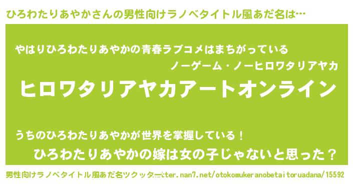 | ヒーロー風カッコイイあだ名 | 『スーパーヒロワタリアヤカ』 |