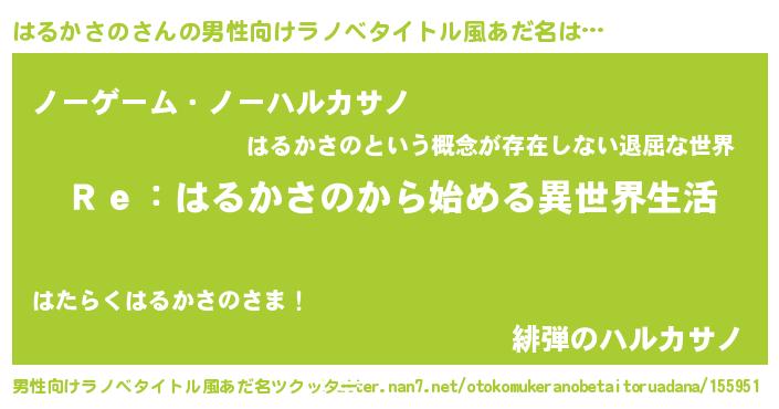 | ヘコむあだ名 | 『はるかさの(小並感)』『はるにゅー』 |