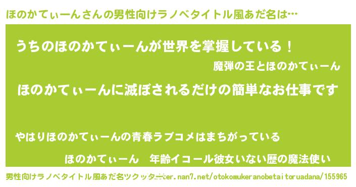 | 胡散臭い通販商品みたいなあだ名 | 『あなたにだけ特別に提供する世界で10本だけ現存している希少なブランデー…その名も「ほのかてぃーん」』 |