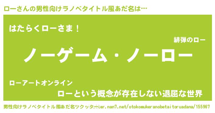 | 女子向けラノベタイトル風あだ名 | 『死神ローの再婚』『首の姫と首なしロー』 |
