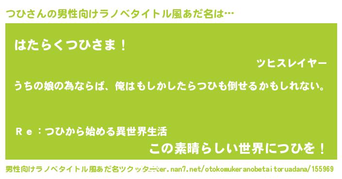 | ヒーロー風カッコイイあだ名 | 『ウルトラつひマン』『仮面ツヒダー』 |