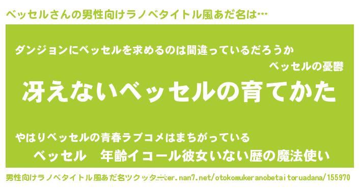 | 伝説のあだ名 | 『解き放たれた僧侶ベッセル』 |