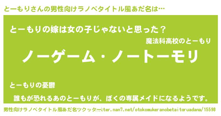 | 女子向けラノベタイトル風あだ名 | 『死神とーもりの再婚』 |