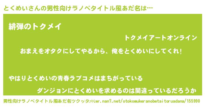 | ヒーロー風カッコイイあだ名 | 『正義の使者とくめい』『幻影騎士トク』 |