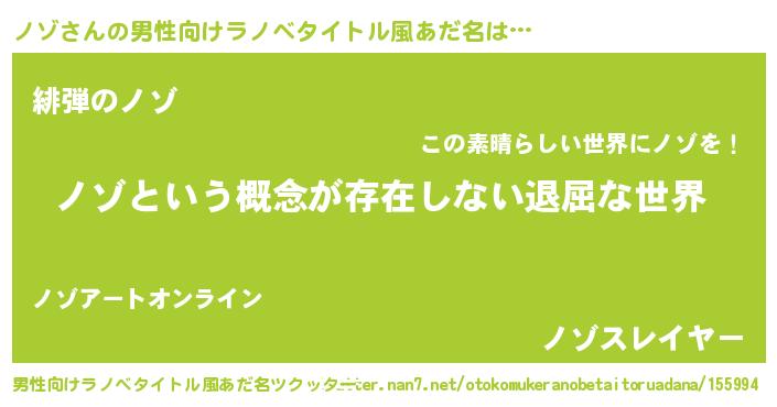 | 胡散臭い通販商品みたいなあだ名 | 『絶対に幸福をもたらす水素水…その名も「ノゾ」』 |