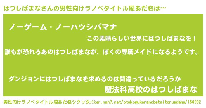 | 女子向けラノベタイトル風あだ名 | 『異世界でカフェはつしばまなを開店しました。』 |