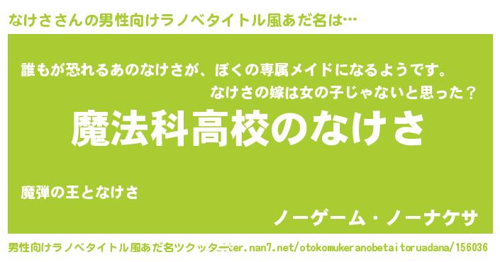 | 女子向けラノベタイトル風あだ名 | 『なけさなんてお断りですっ。』 |