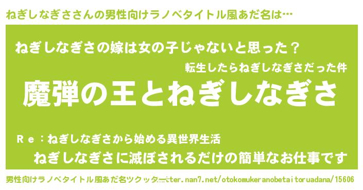 | 女子向けラノベタイトル風あだ名 | 『乙女ゲームの破滅フラグしかない悪役ねぎしなぎさに転生してしまった…』 |