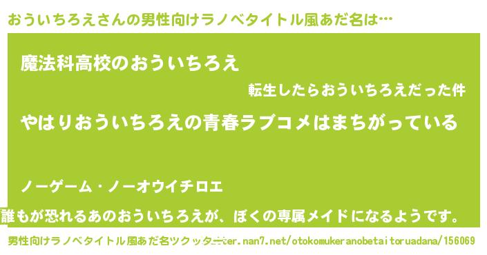 | 意味不明あだ名 | 『おういちろえフォーエバー』 |