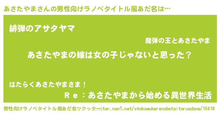 | 女子向けラノベタイトル風あだ名 | 『あさたやま様がみてる』 |