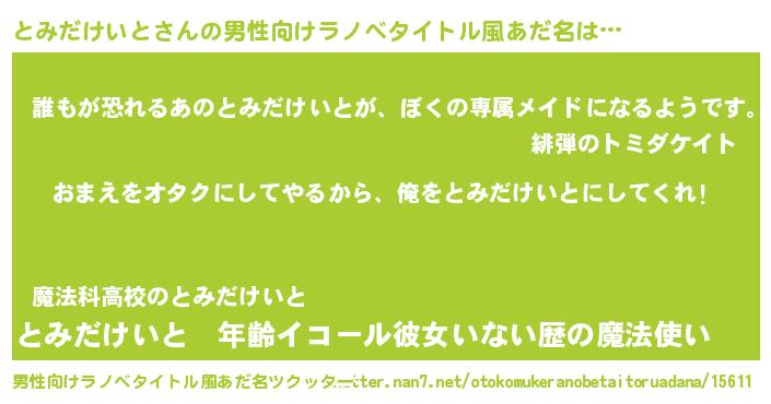 | 女子向けラノベタイトル風あだ名 | 『とみだけいと夫妻のなれそめ』 |