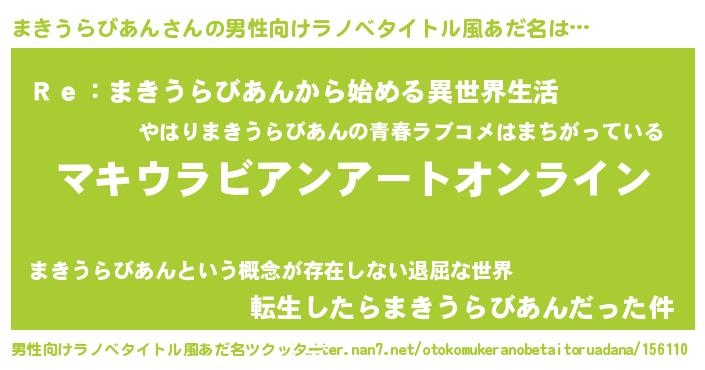 | 胡散臭い通販商品みたいなあだ名 | 『モテモテ間違いなし霊験あらたかなお札…その名も「まきうらびあん」』 |