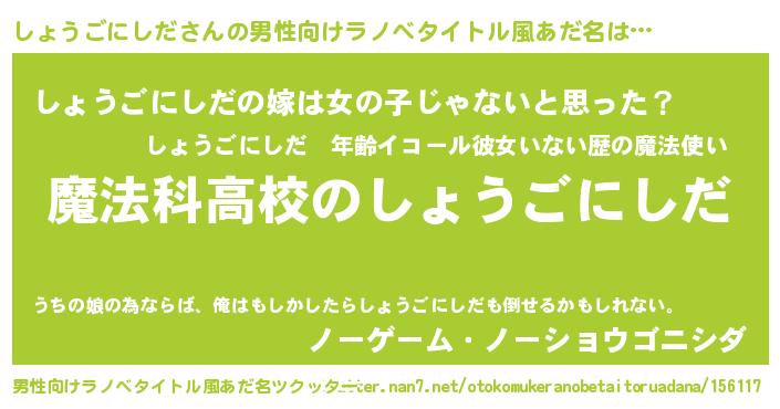 | 意味不明あだ名 | 『自称しょうごにしだ』 |