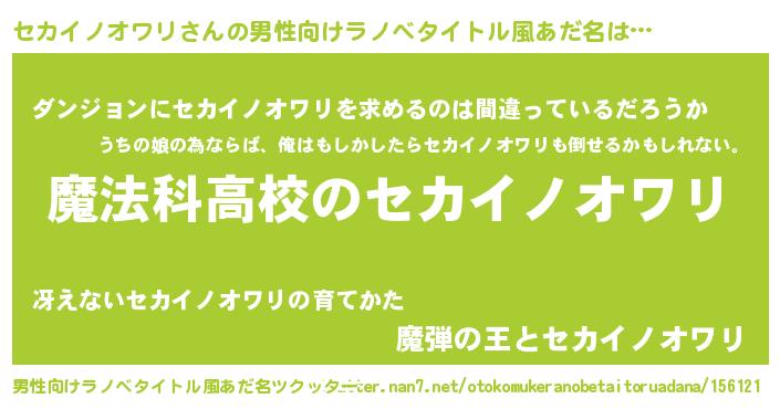 | 女子向けラノベタイトル風あだ名 | 『セカイノオワリなんてお断りですっ。』 |