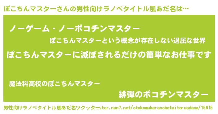 | ヒーロー風カッコイイあだ名 | 『愛の使者ぽこちんマスター』 |