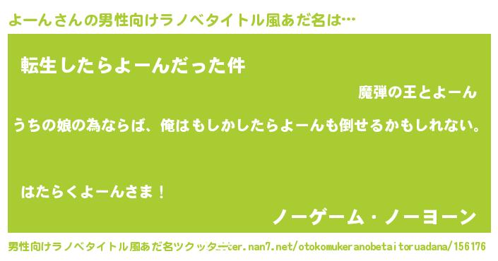 | 女子向けラノベタイトル風あだ名 | 『よーんの婚約者』『よーん恋絵巻』 |