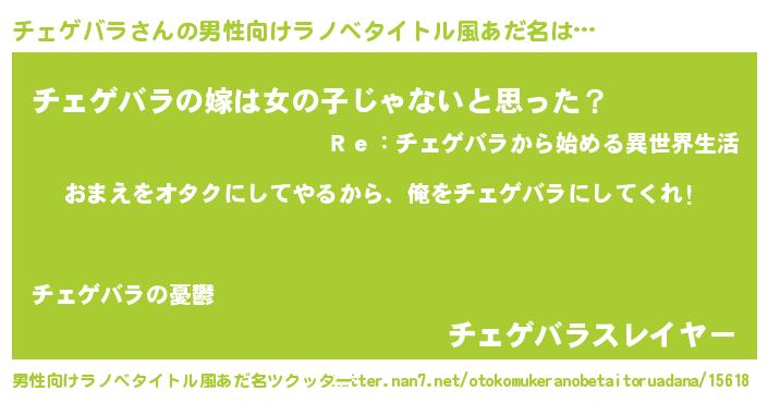 | 女子向けラノベタイトル風あだ名 | 『チェゲバラ夫妻のなれそめ』 |