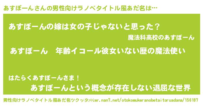 | 女子向けラノベタイトル風あだ名 | 『あすぼーんの玉の輿計画!』 |