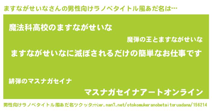 | 女子向けラノベタイトル風あだ名 | 『横柄ますながせいなと宰相陛下』 |