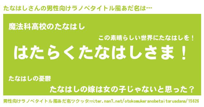 | ヒーロー風カッコイイあだ名 | 『超時空戦士タナハシ』『幻影騎士タナ』 |