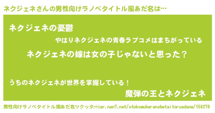 | 女子向けラノベタイトル風あだ名 | 『ネクジェネ様がみてる』 |