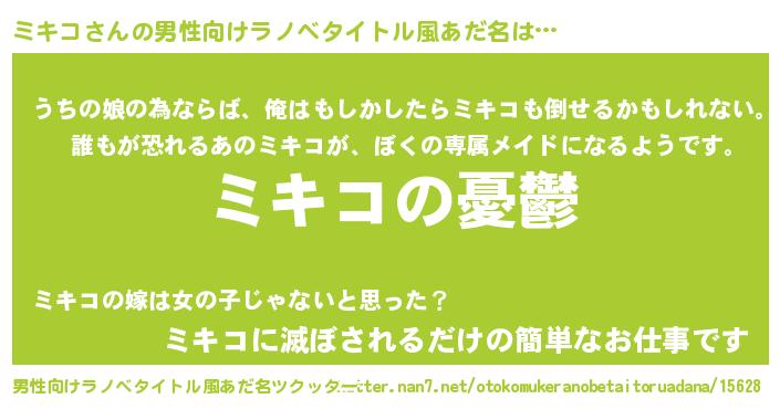 | 女子向けラノベタイトル風あだ名 | 『(仮)ミキコのやんごとなき事情』 |