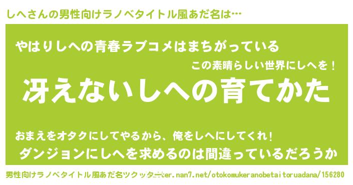 | ヘコむあだ名 | 『なまこ酢』『しへ太郎』『しへ(笑)』 |
