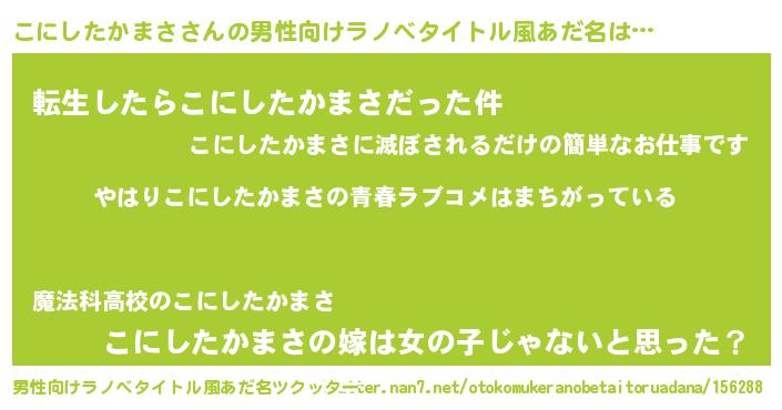 | 女子向けラノベタイトル風あだ名 | 『こにしたかまさ伯爵の花嫁』 |