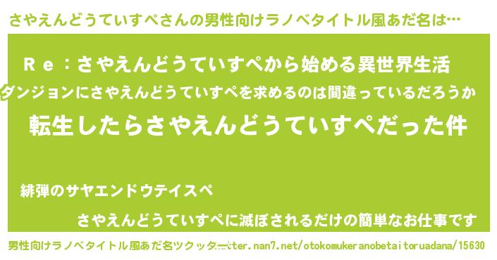 | ヒーロー風カッコイイあだ名 | 『サイバー戦士サヤエンドウテイスペ』 |