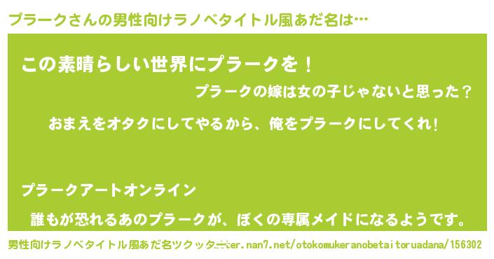 | 女子向けラノベタイトル風あだ名 | 『プラーク恋絵巻』『プラークの契約王妃』 |