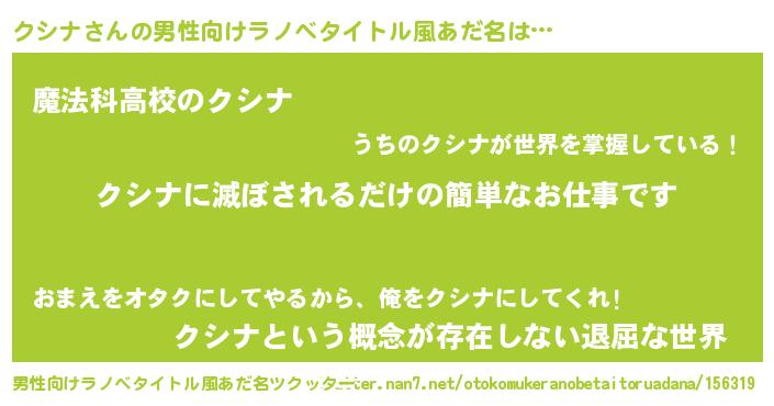 | ヘコむあだ名 | 『クシナ(爆)』『クシっふぃ~』 |