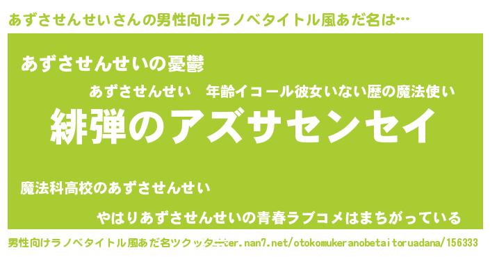 | 女子向けラノベタイトル風あだ名 | 『シンデレラあずさせんせい家の靴箱館』 |
