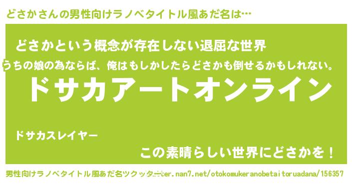 どさかさんの男性向けラノベタイトル風あだ名をツクッター!