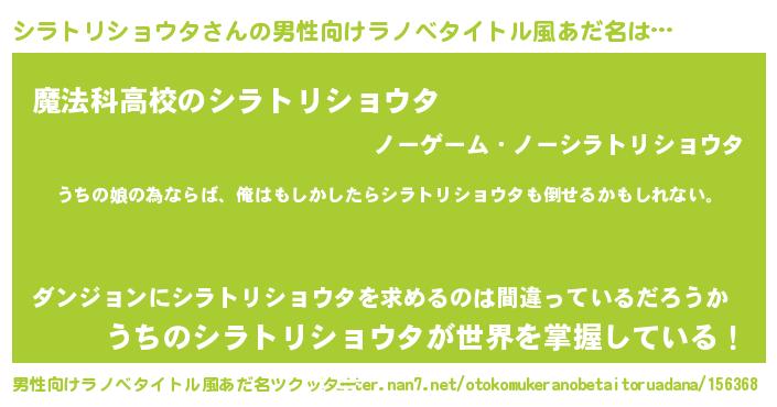 | 女子向けラノベタイトル風あだ名 | 『シラトリショウタ伯爵の花嫁』 |